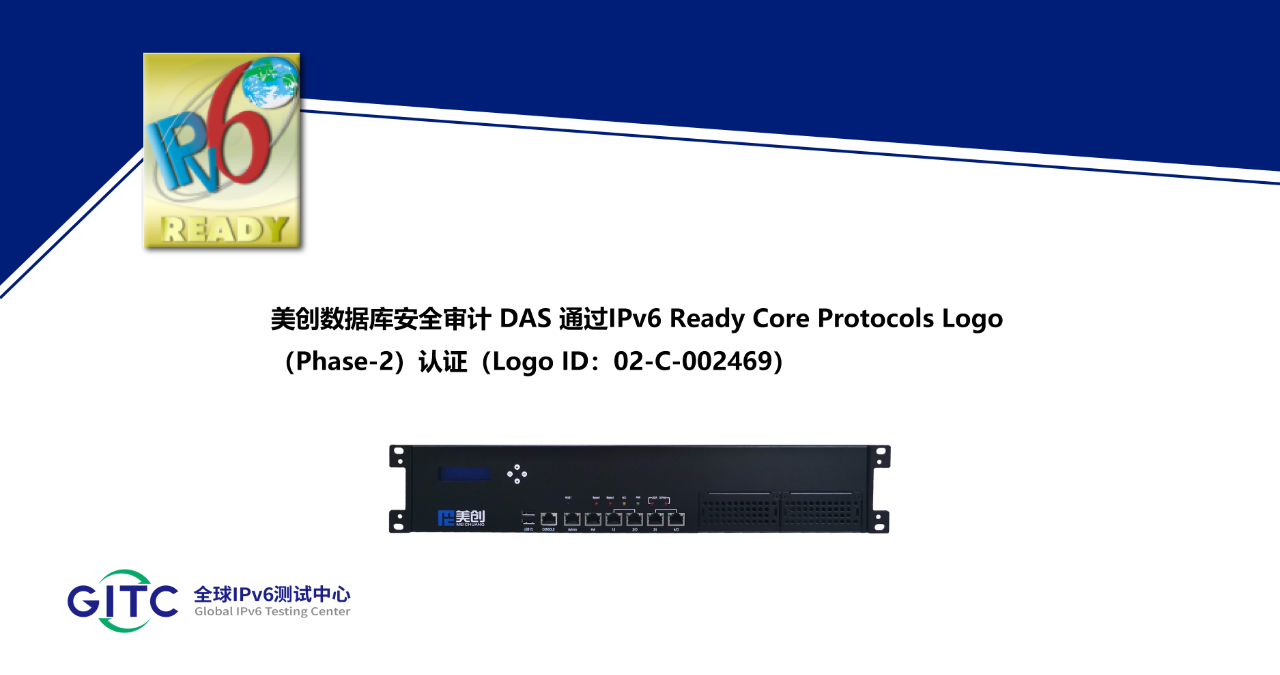近日,美創(chuàng)科技數(shù)據(jù)庫安全審計(jì)DAS在下一代互聯(lián)網(wǎng)國家工程中心-全球IPv6測試中心正式通過IPv6 Ready核心協(xié)議Phase-2測試,并榮獲由國際組織IPv6 Forum頒發(fā)的IPv6 Ready Logo Phase-2認(rèn)證證書(Logo ID:02-C-002469)。