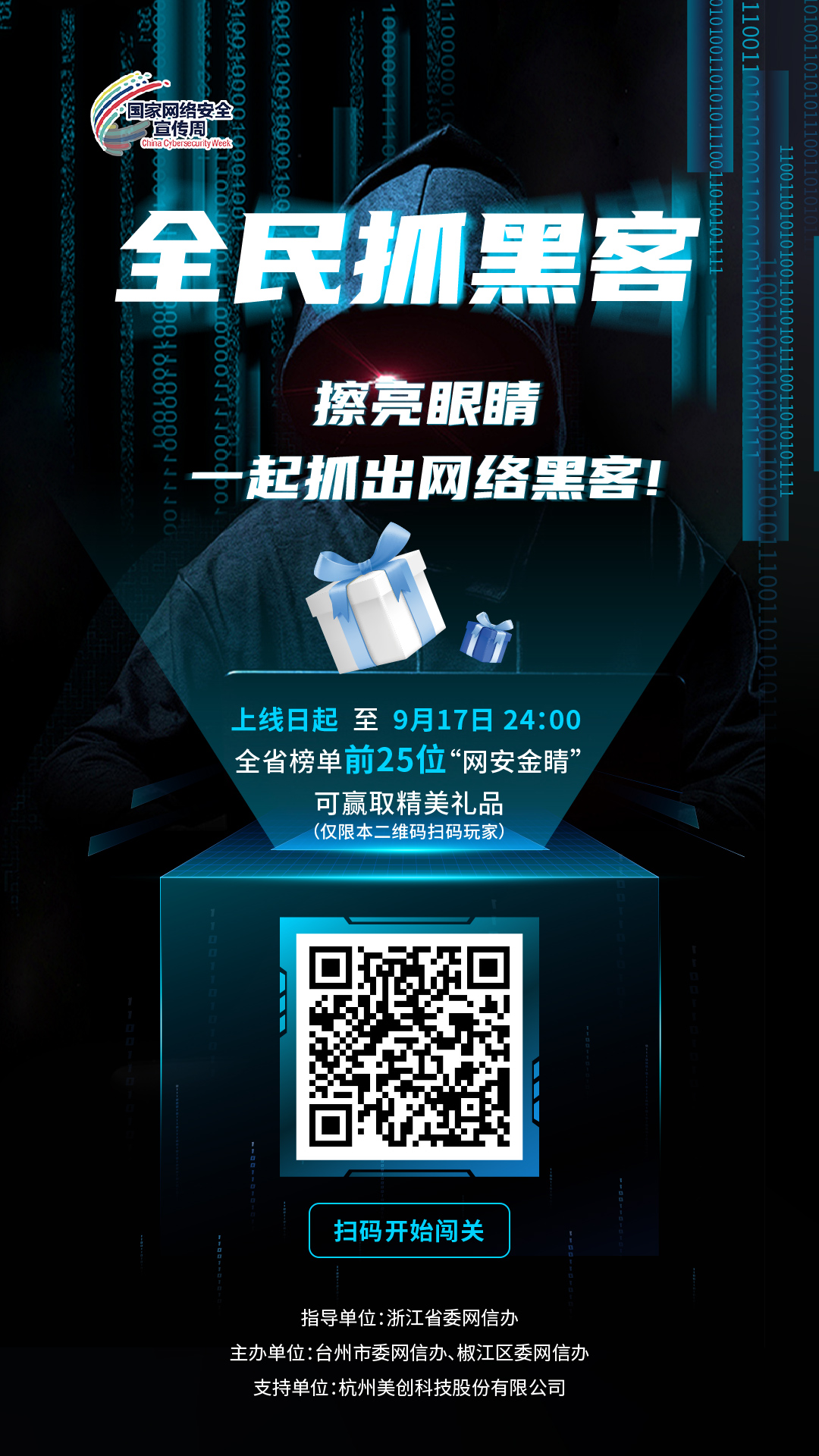 浙江省委網信辦、臺州市委網信辦和椒江區委網信辦聯合推出,杭州美創科技股份有限公司支持的“墾荒牛大冒險”“全民抓黑客”兩款全民互動小游戲,通過游戲闖關+知識問答帶你進入充滿挑戰與樂趣的網安探險之旅。不僅能獲得緊張刺激的游戲闖關體驗,還能與全省網友同臺比拼網安知識,打榜贏取精美禮品。