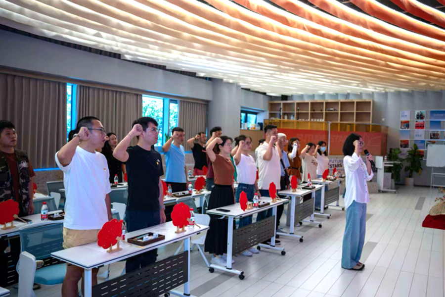 活動現場,全體黨員高舉右拳,面對鮮紅的黨旗莊嚴宣誓。 鏗鏘有力的誓言回蕩在會場,既是對入黨初心的回望,更是對使命擔當的重申,每一位黨員都在宣誓中再次堅定了為黨和人民事業不懈奮斗的信念。