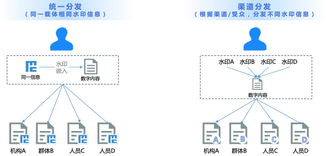 水印載體分發連接水印嵌入與提取,主要包含統一分發(相同水印內容)、渠道分發(個性化水印內容),是技術走向應用場景的環節,但在水印載體傳遞給目標的過程中,可能面臨載體的失真干擾、水印攻擊等威脅,十分考驗水印 “抗造” 能力,因此,水印載體需盡量分發至合適的場景才能起到理想的作用;