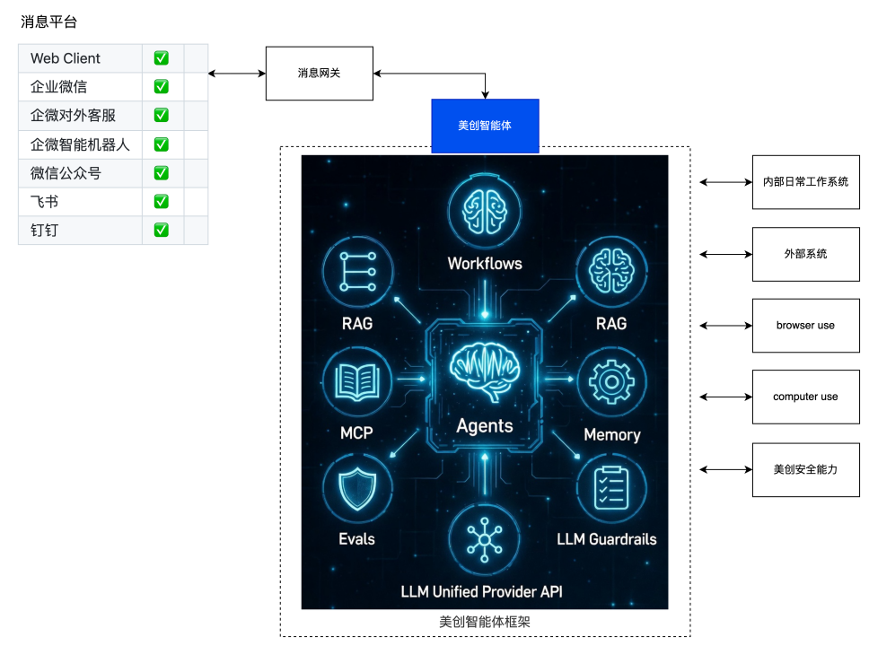 美創智能體框架不僅支持多種大模型統一調用,還實現了企業級安全、可控、可評估、可落地的完整閉環,是我們所有AI員工的“操作系統”與“數字神經網絡”。