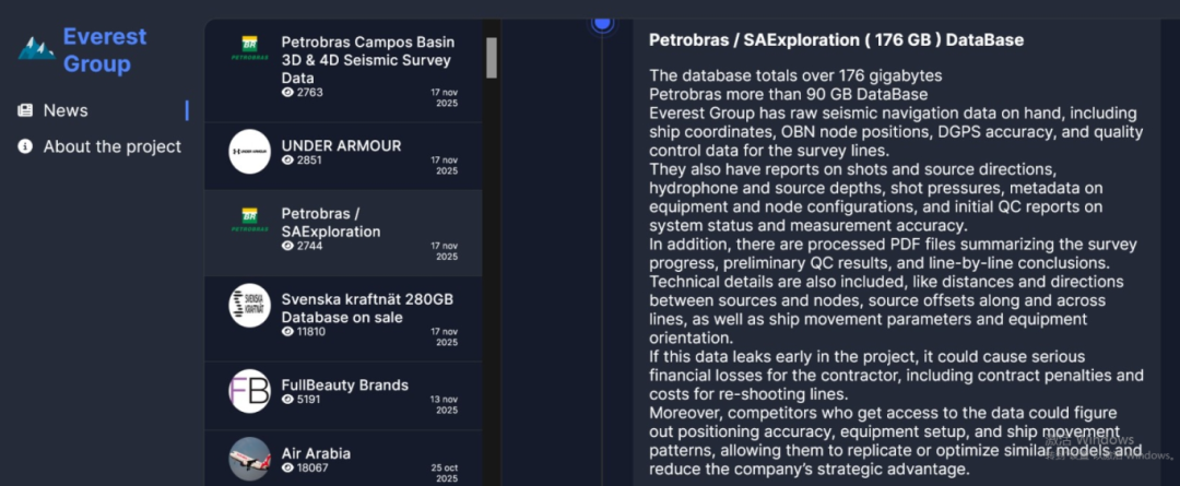 3、Everest勒索組織聲稱入侵巴西石油巨頭